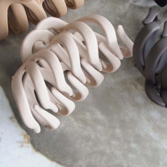 Espresso Claw Grande er en stor hårklemme designet med SoftGrip-teknologi, der giver et stærkt og behageligt hold uden at trække i håret. Espresso Claw Grande er formet med bløde, afrundede kurver, der følger hovedets naturlige form, og sikrer, at klemmen sidder behageligt og stabilt – selv ved længere tids brug.