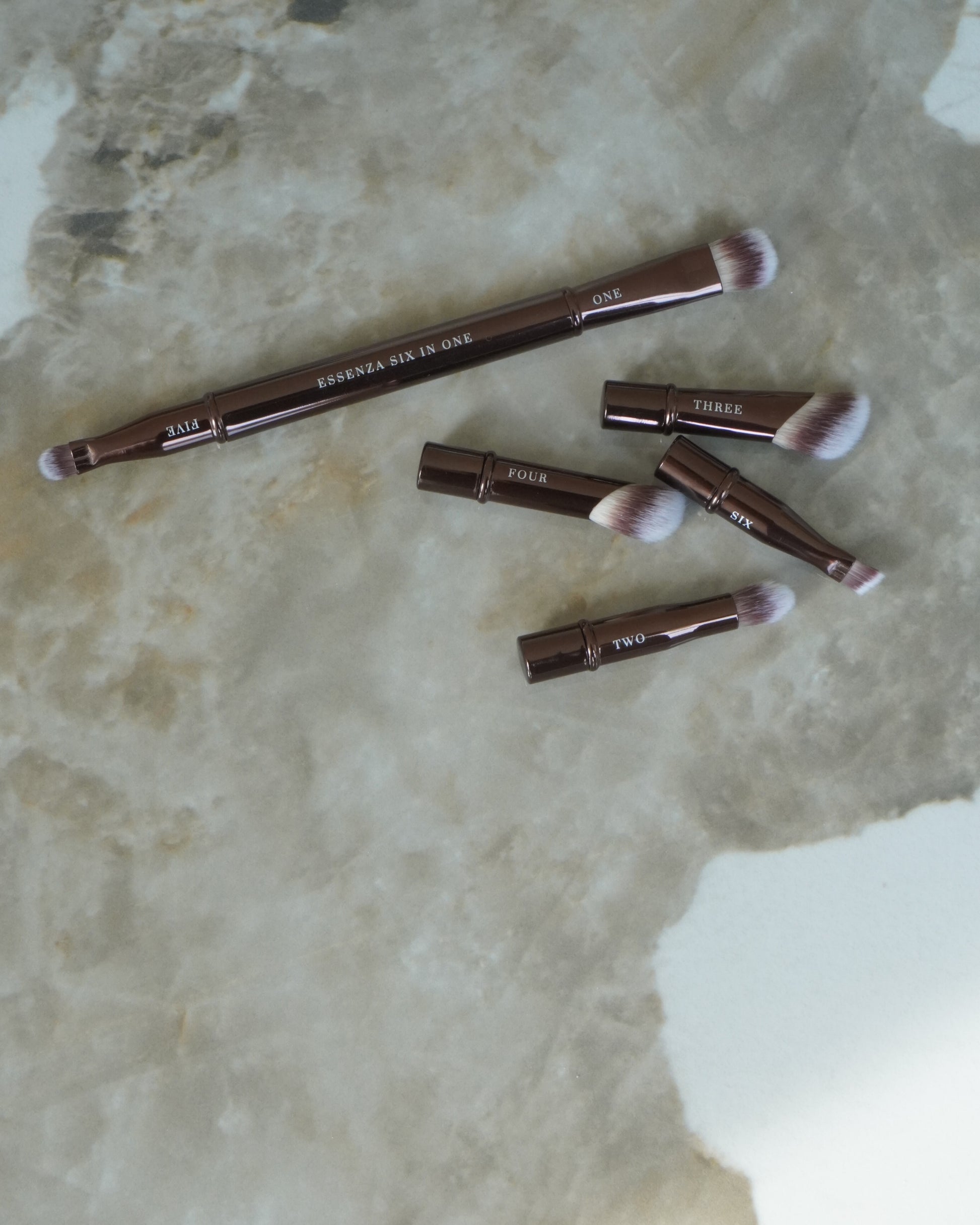 Essenza Six in One Brush System er mere end en makeupbørste – det er et komplet børstesystem, skabt til at give dig alle de vigtigste værktøjer i ét intuitivt, smukt design. Seks specialdesignede børstehoveder, udviklet til alt fra øjenskygge og eyeliner til concealer, contour og læber, samlet i én løsning, der gør din makeuprutine enklere, hurtigere og mere inspirerende.