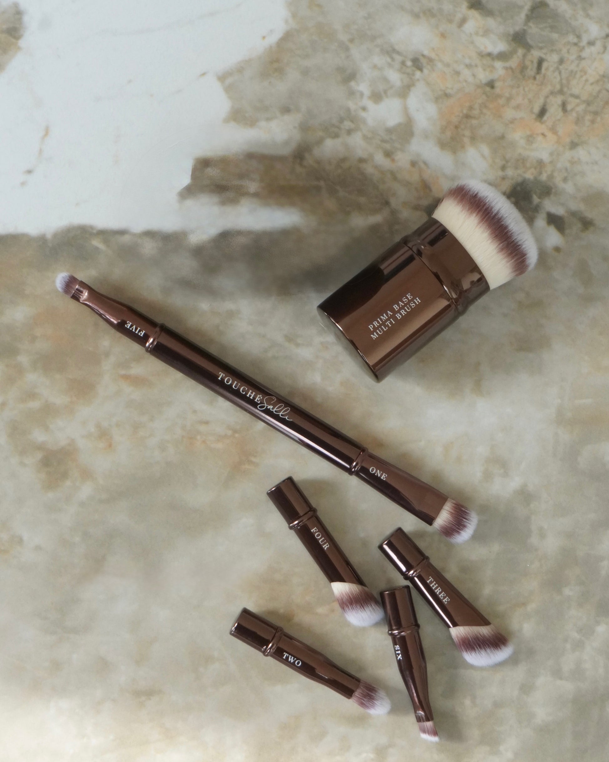 Sættet er designet til at følge dig – hjemme som ude: Essenza Six In One samles elegant i sin råhvide pouch, mens Prima Base Multi Brush med sit udtrækkelige design og beskyttende hætte er ideel til livet på farten.
