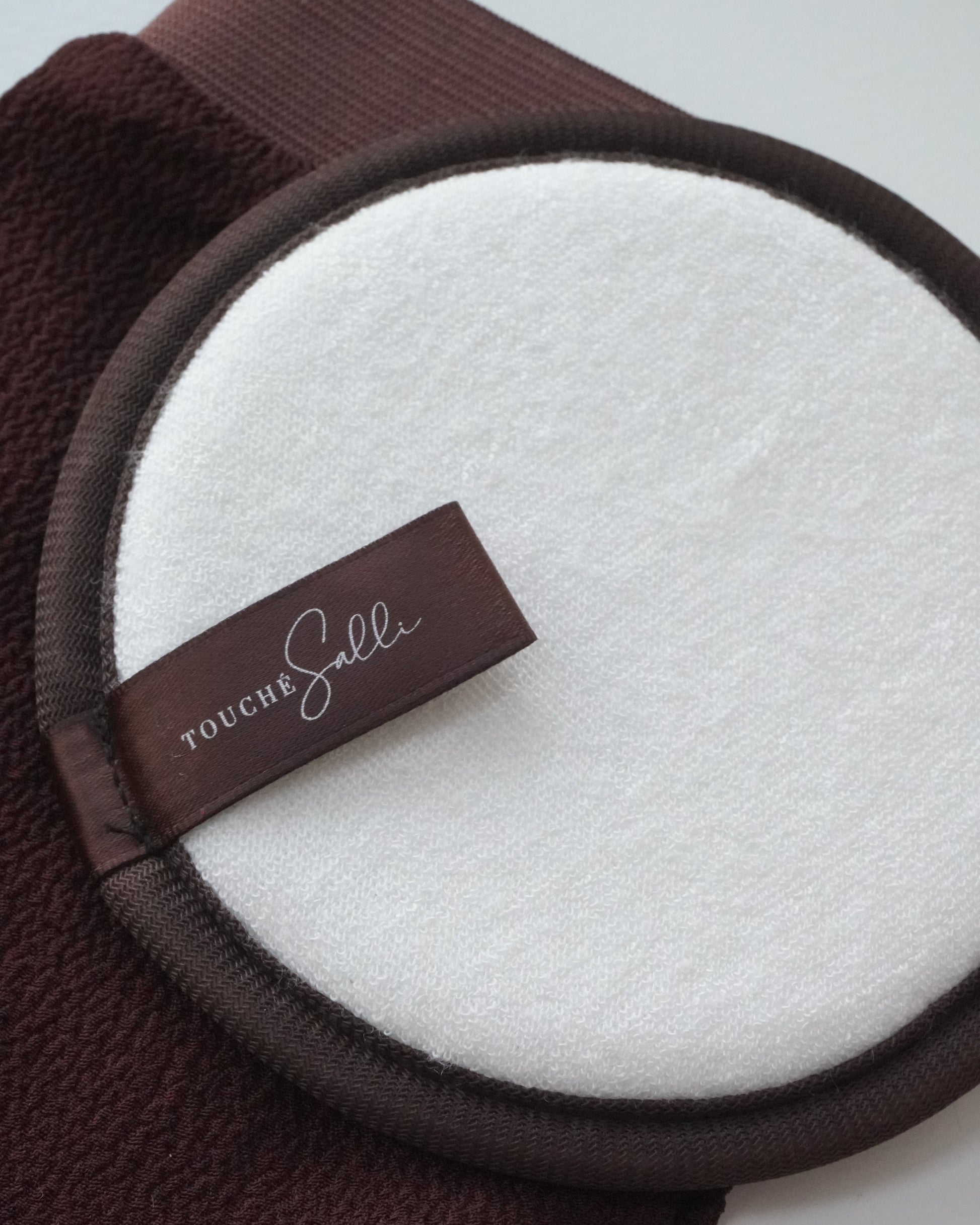 Corpo Glow Exfoliating Mitt: Brug i badet 2–3 gange om ugen – på fugtig hud, i lette strøg mod hjertet. Påfør din yndlings shower gel eller badeolie sammen med handsken. Afslut med bodylotion eller olie for silkeblød glød.